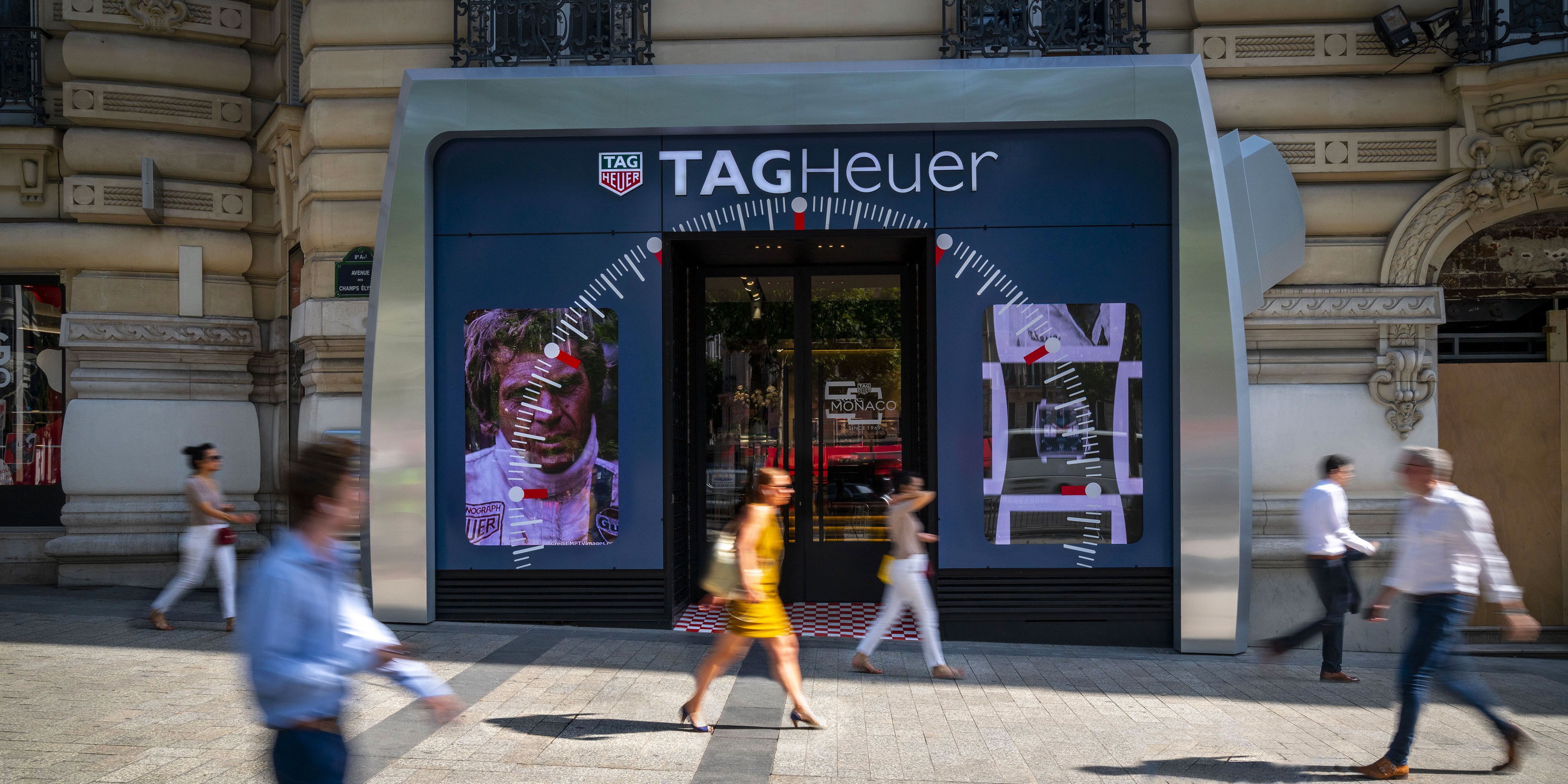 1969-2019. Pour célébrer les 50 ans de sa montre « Monaco », TAG Heuer a confié à l’atelier de scénographie Athem le soin de passer sa boutique des Champs-Elysées à l’heure de son modèle mythique, immortalisé à l’écran par Steve McQueen.
