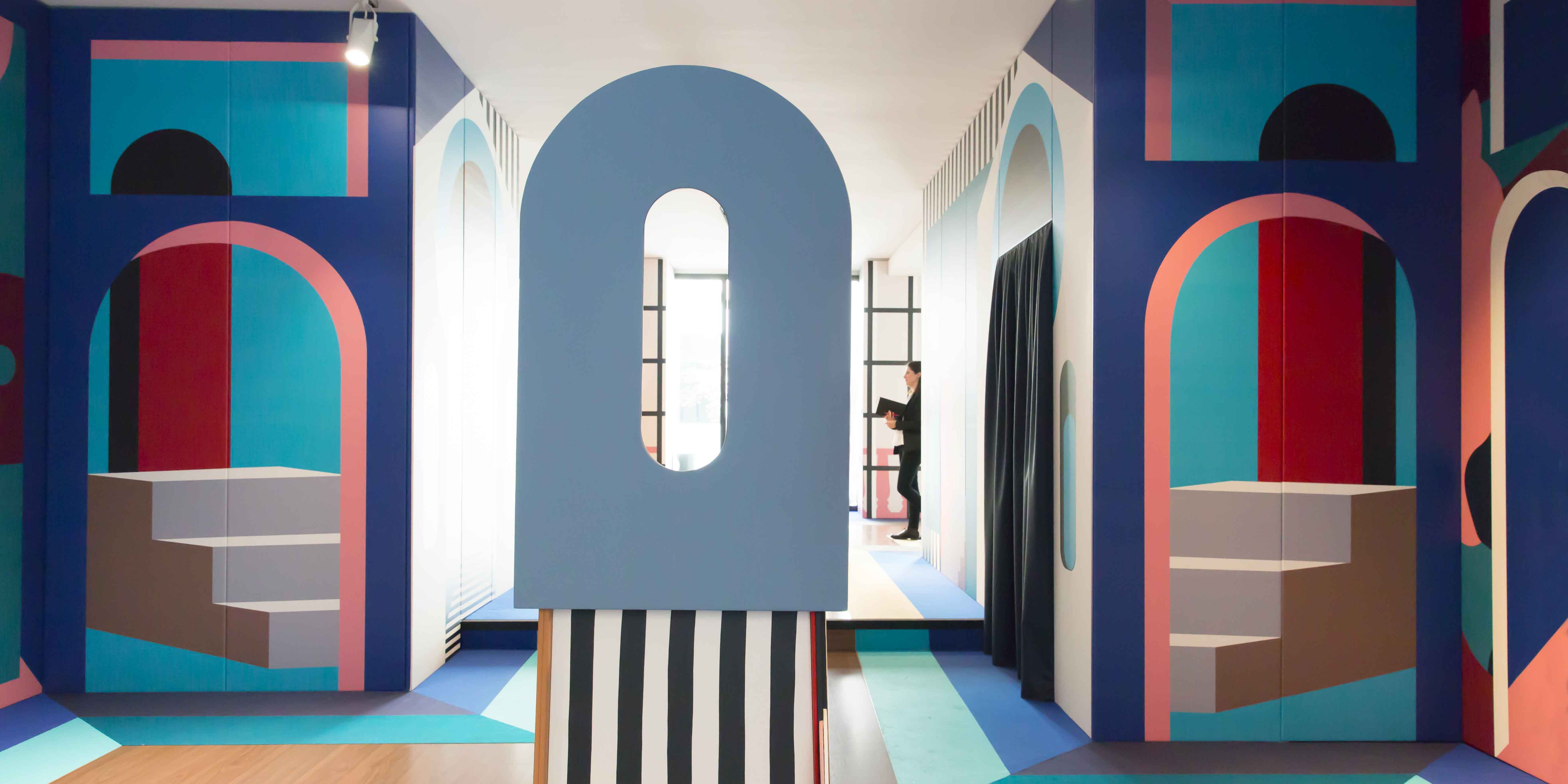 Auteur d’une installation remarquée pour le Centre Pompidou et d’un tapis pour la nouvelle collection Disco Gufram, le duo de designers a investi pour ce projet une galerie du quartier de l’hyper centre de Milan, avec des panneaux de tissu Stamskin habillés de leurs dessins colorés d’inspiration architecturale, revisitant les ponts italiens. Une installation immersive qui n’a pas manqué mes designers du monde entier qui sont venus la visiter.