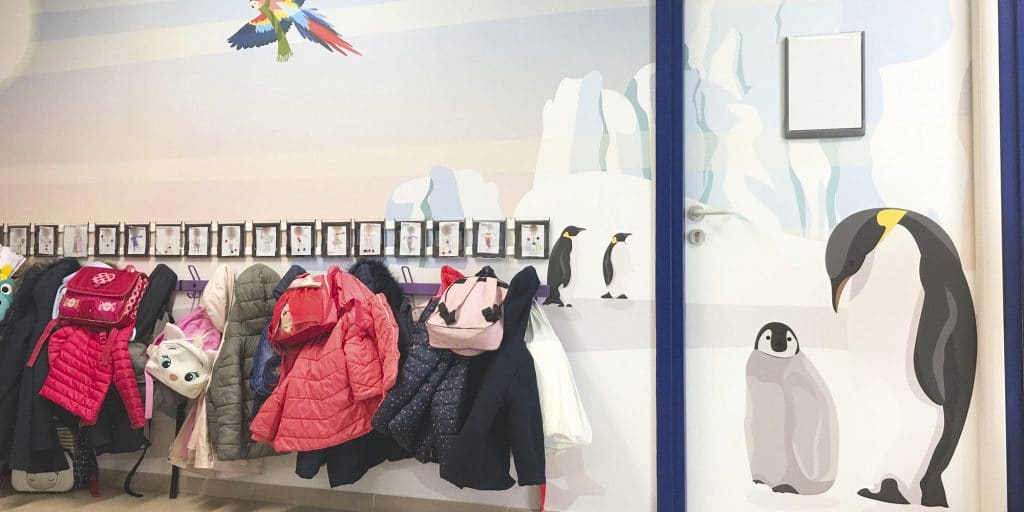 « À l’école Saint-François-de-Paule, nous sommes convaincus que la réussite des enfants passe par l’aménagement d’un environnement propice à la créativité », explique Sébastien Martel, directeur de l’établissement scolaire. La décoration de l’école se mue alors en véritable projet pédagogique, mené en concertation entre l’établissement et l’agence. Le thème : les climats, leur flore et leur faune. « Notre designer a divisé l’école en trois zones, correspondant chacune à un climat : tropical, tempéré et polaire. Chaque zone avec ses animaux, ses plantes et ses océans. Nous y avons associé des personnages auxquels les enfants peuvent s’identifier – une fille, un garçon, un chien et un perroquet – qui évoluent dans les décors, dont la taille a été pensée en fonction des âges des enfants. Ainsi, les personnages vont suivre les enfants pendant toute leur scolarité et peuvent être intégrés par l’équipe pédagogique dans des supports d’apprentissage », dévoile Sophie Riccobono.