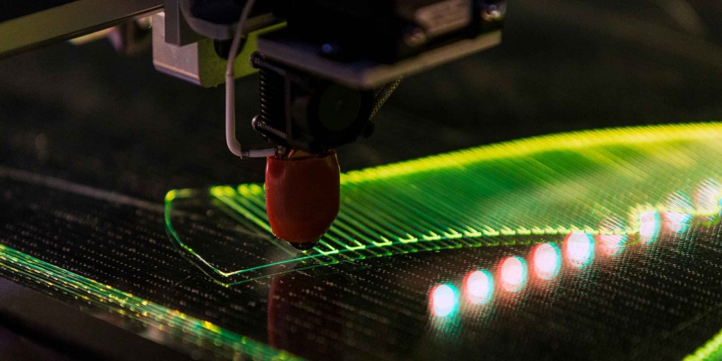 Nike vient de franchir une étape décisive dans le domaine de la fabrication additive de chaussures de sport. Son nouveau procédé, baptisé Flyprint, mêle l’analyse de données récupérées auprès des athlètes et l’impression 3D. Le géant américain utilise pour cela la technologie Solid Deposit Modelisation (SDM) qui permet de dérouler et de fondre des filaments de polyuréthane thermoplastique (TPU) pour en faire des couches successives puis leur donner les formes désirées. Plus les fils sont espacés, plus le textile est souple. À l’inverse, plus ils sont serrés, plus le textile offre du maintien.