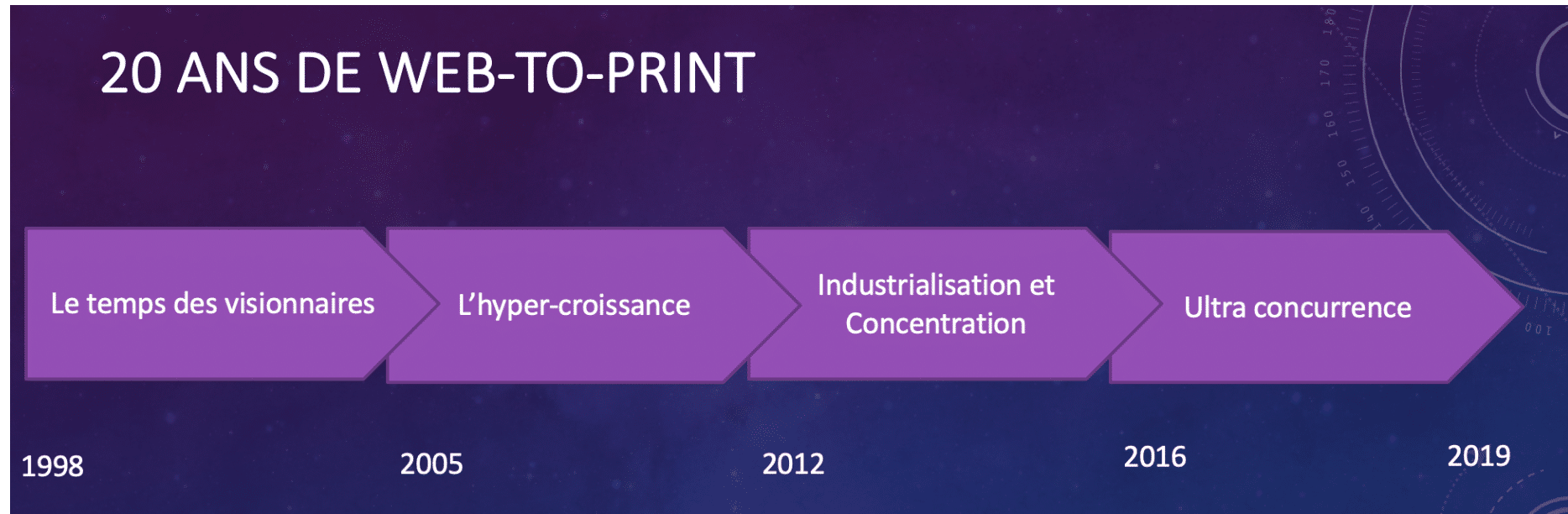 20 ans… c’est l’âge de l’imprimerie en ligne. Ce secteur a démarré de zéro à la fin des années 90, porté par des visionnaires géniaux qui, avant tout le monde, ont anticipé les mutations à venir dans la consommation de l’imprimé et dans les modes de production associés. En 1999, le mot « amalgame » était a-b-s-o-l-u-m-e-n-t tabou dans l’imprimerie. Le concept allait à l’encontre des habitudes et des valeurs des imprimeurs… Le web-to-print a cassé ces habitudes, en groupant les commandes de clients par types de combinaisons papier-matières, afin d’optimiser les délais de fabrication et les coûts de production.