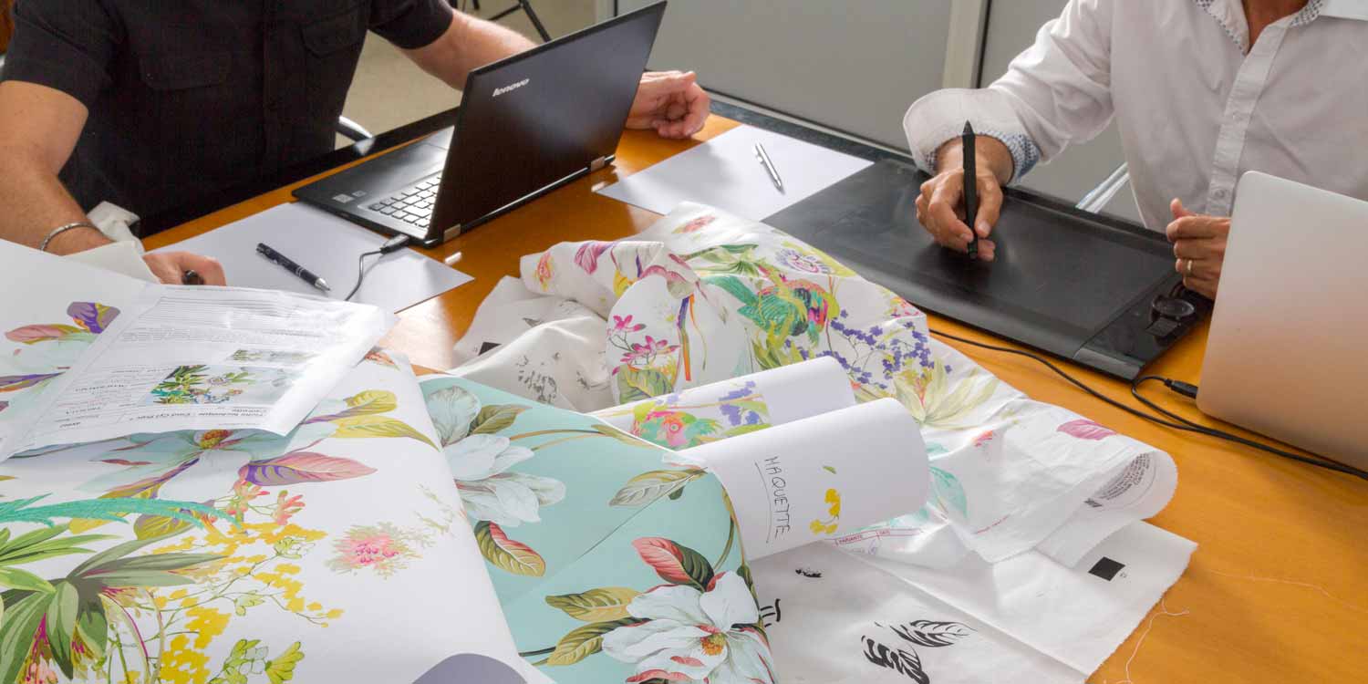 Respectivement peintre et graphiste, Odile et Emanuelle (avec un seul « m ») rêvaient d’imprimer leurs créations sur des tissus naturels, tissés et imprimés en France. Pour réaliser leurs projets, elles ont eu la chance de trouver la main tendue de Label Graine, un lieu unique de création et de formation imaginé par le groupe Valtex, spécialiste de l’impression textile depuis 30 ans. Témoignages.